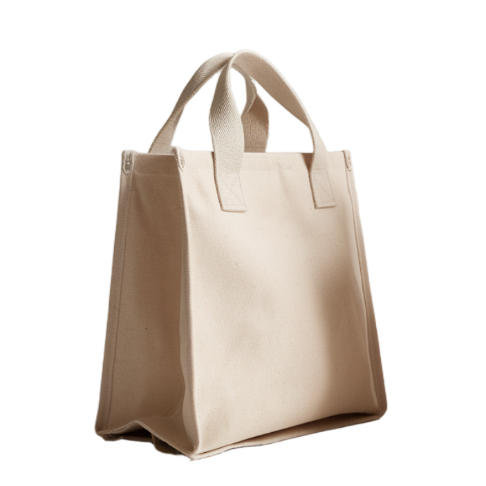 A durable and eco-friendly canvas tote bag with a structured rectangular shape and strong handles. Perfect for shopping, work, travel, or everyday essentials.