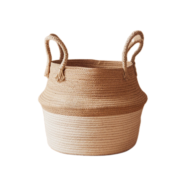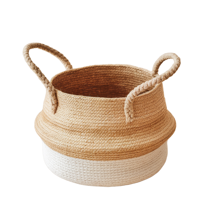 Made entirely from natural jute, this eco-friendly basket features a stylish woven design with strong braided jute handles. Its flexible yet durable structure makes it perfect for organizing items, while adding a rustic, earthy charm to any room. Ideal for storage, plants, or decor, it brings a natural elegance to your home